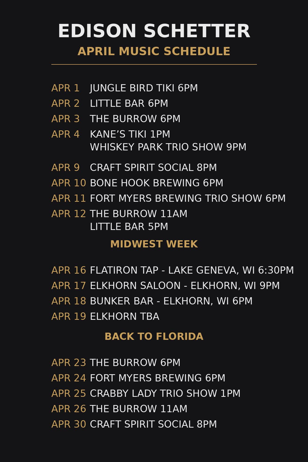 I’m Edison Schetter, a singer-songwriter originally from Oshkosh, Wisconsin and now living in Florida. I spent nearly ten years running my own handyman business before taking a leap of faith to pursue music full time, a decision that completely changed my life.